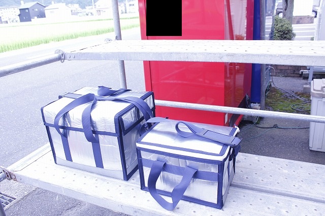 外側はアルミパックで、内蔵した発泡スチロール箱によって高い